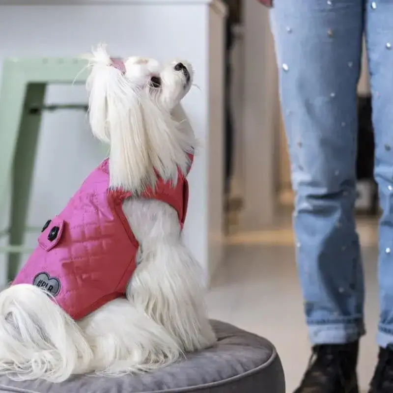 Kurteczka dla psa odszyta z softshellu, który skutecznie chroni przed wiatrem, mżawką i zachowuje bardzo wysoki poziom oddychalności. Od spodu kurteczkę ociepliliśmy cieplutkim polarkiem minky, aby pieski były przyjemnie ogrzane. To co jest fantastycznego w naszych kurteczkach to łatwość w zakładaniu oraz wszyte szeleczki w konstrukcje ubranka dla psa, żebyście mogli szybko i sprawnie wyjść na spacerek.